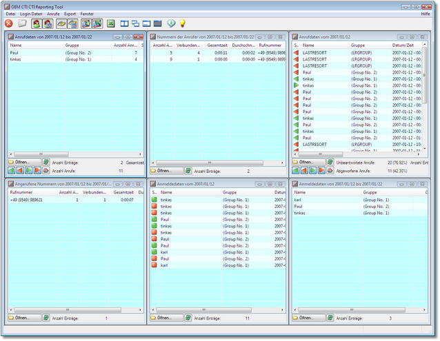 Aufgabe Das CTI Reporting Tool ist ein Datenbetrachter für die informationen welches das ACD Light Modul liefert. Es werden ausschließlich die Daten von Mitgliedern der Servicegruppe ausgewertet. Es gibt verschiedene Ansichten für die Anmeldeinformationen der Servicekräfte und für die Telefonate.