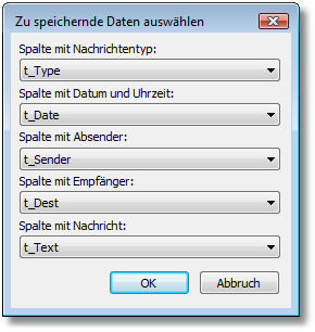 Legen Sie danach fest in welche Tabelle die Nachrichten gespeichert werden sollen. Sie können auch Standardtabellen erstellen, welche dann bereits alle notwendigen Datenfelder enthalten.