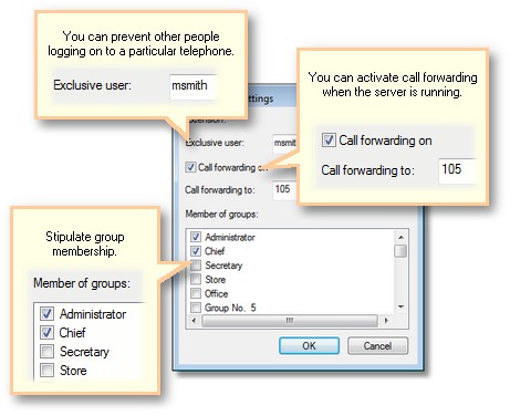 You can change the settings for each user individually. You can reach the configuration dialog by double-clicking on the user’s line or clicking “Change settings”.